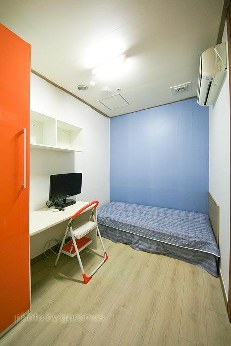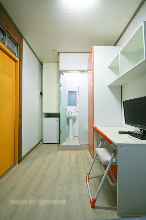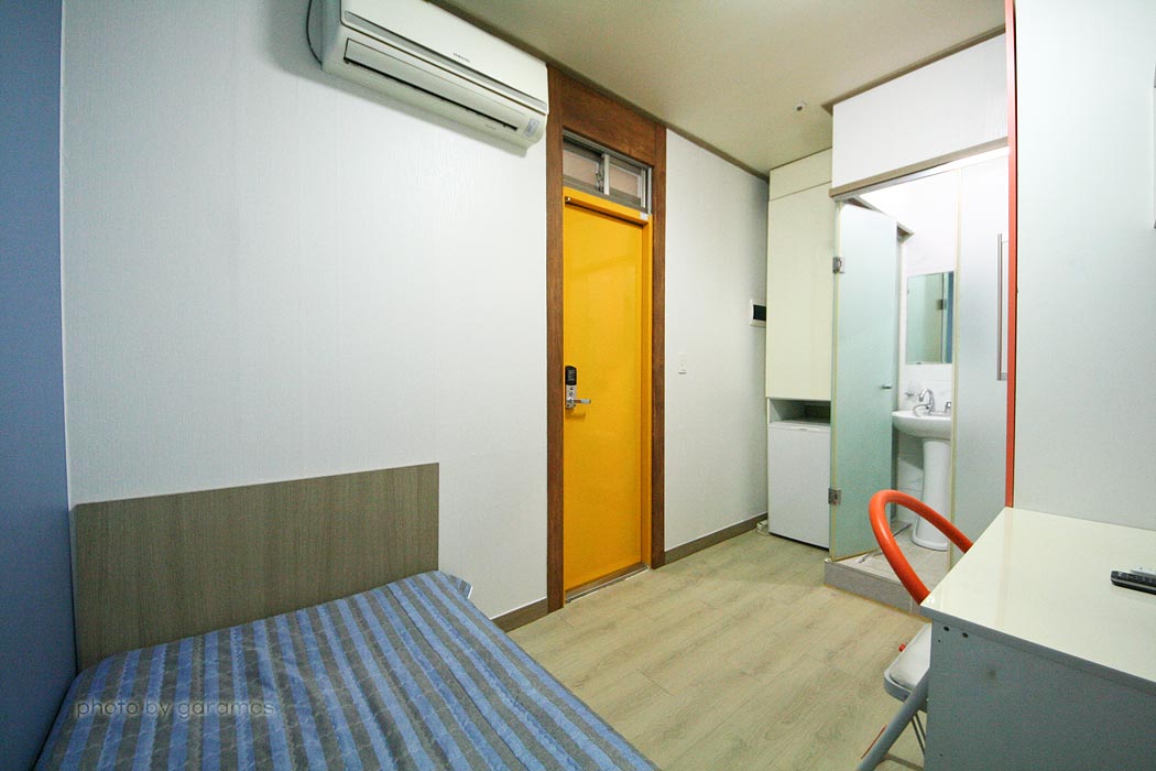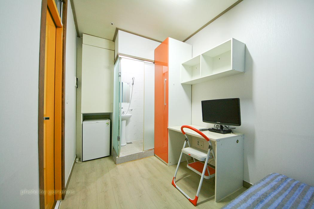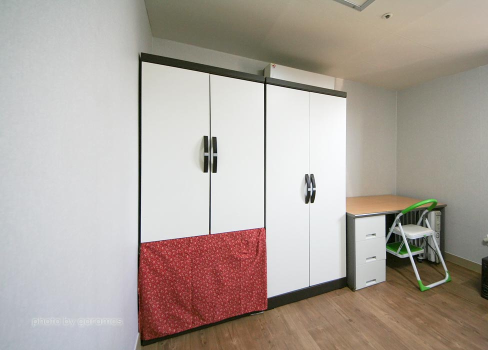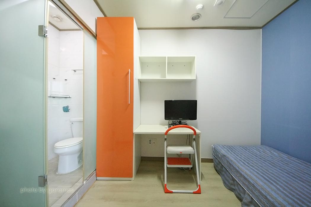 편안한 침대, 책상, 의자, 옷장, 냉장고